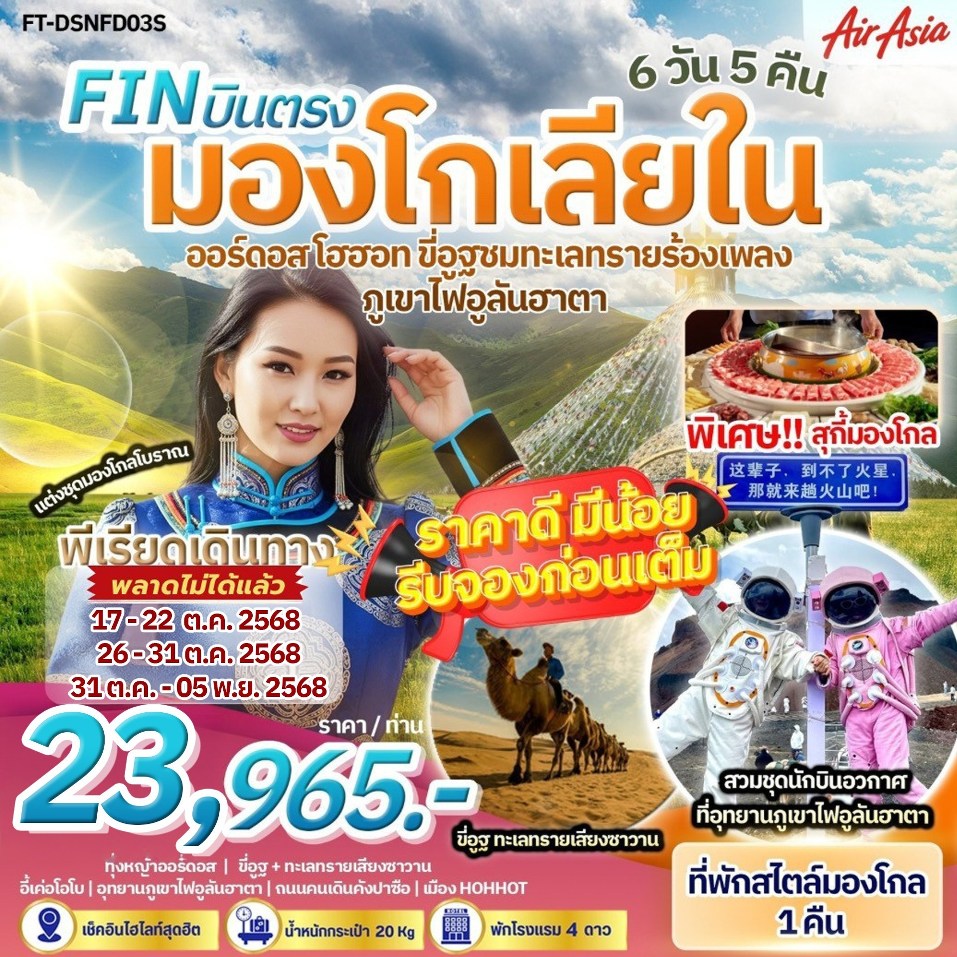 FT-DSNFD03S ออร์ดอสโฮฮอท อุทยานภูเขาไฟอูลันฮาตา ขี่อูฐชมทะเลทรายร้องเพลง